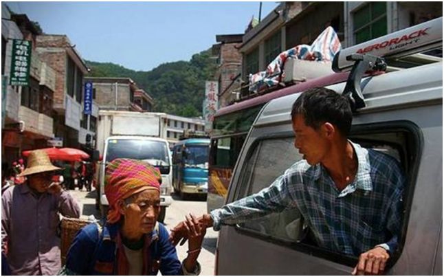 一位年轻的妈妈给童车里的女儿喂饭,而她的妈妈,怕她饿着,也一口一口喂给自己的女儿。